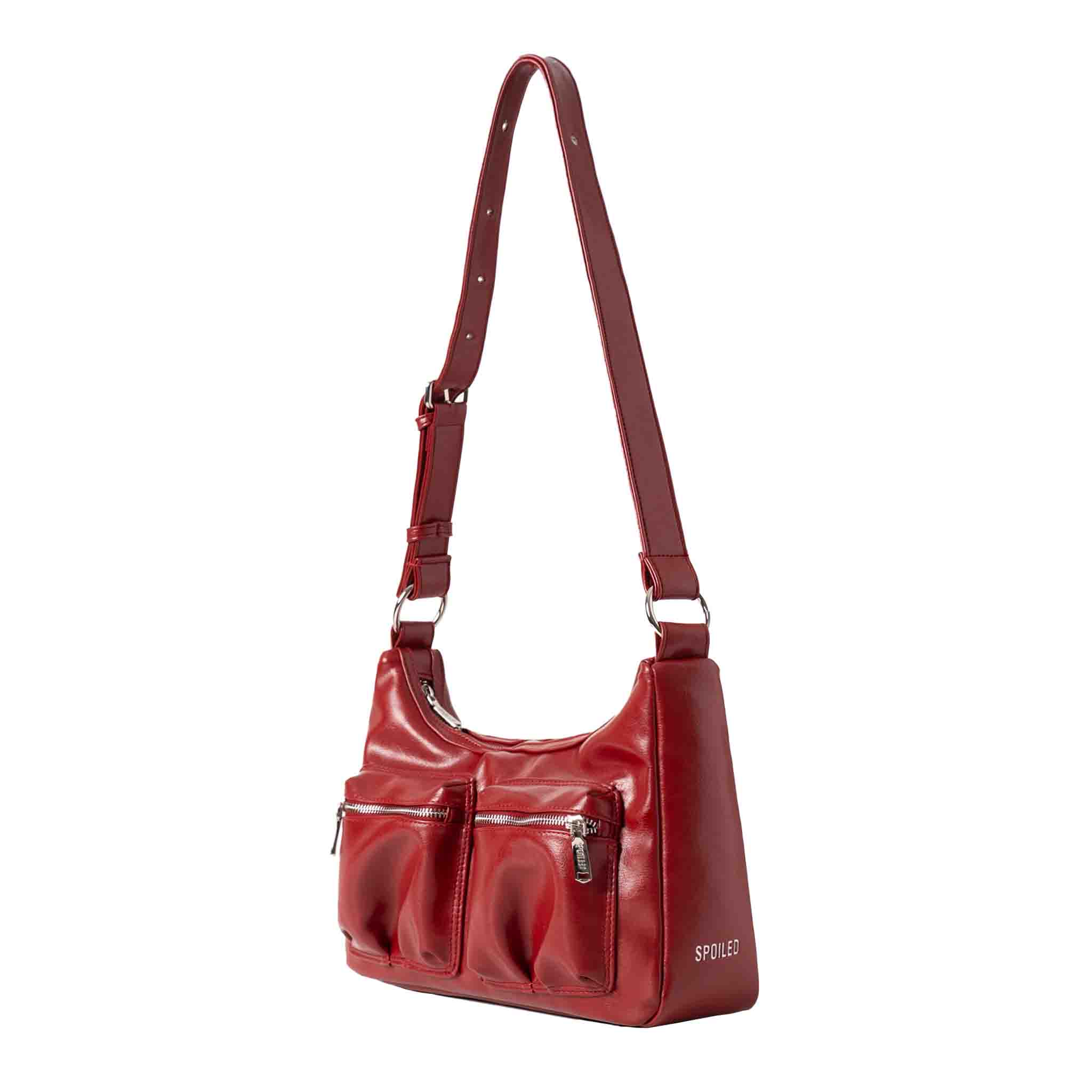 Túi được làm từ chất liệu da PVC cao cấp với bề mặt bóng mịn, tạo cảm giác sang trọng và bền đẹp theo thời gian. Tông màu đỏ cherry rực rỡ nhưng lại không khó để phối đồ, mang lại vẻ ngoài cá tính, thời thượng. Điểm nhấn của chiếc túi y2k này là hai ngăn nhỏ phía trước với khóa kéo tiện dụng, giúp bạn dễ dàng cất giữ các vật dụng cần thiết như điện thoại, tai nghe hay thẻ ngân hàng. Dây đeo vai có thể điều chỉnh độ dài linh hoạt, phù hợp với nhiều vóc dáng và phong cách khác nhau.